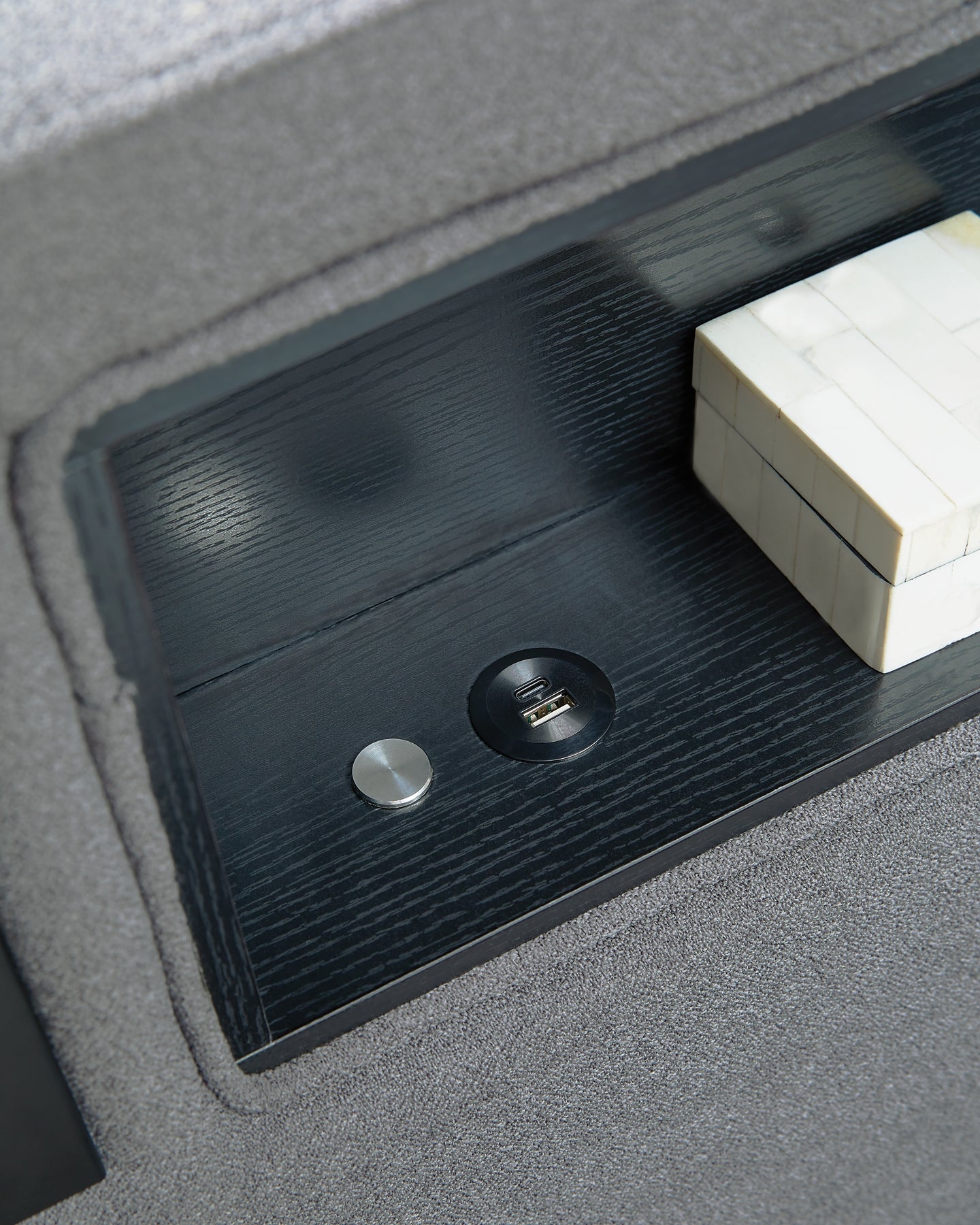 | Details | Includes upholstered headboard, footboard, rails and roll slats, Made with engineered wood frames, solid wood components and foam, Polyester upholstery, Multicolored ambient LED lighting in headboard and lower footboard rail, LED reading light with articulating arm on each side of bed, Bed does not require additional foundation/box spring; accommodates most zero clearance adjustable bases, Mattress available, sold separately, Power cord included; UL Listed, Assembly required | |